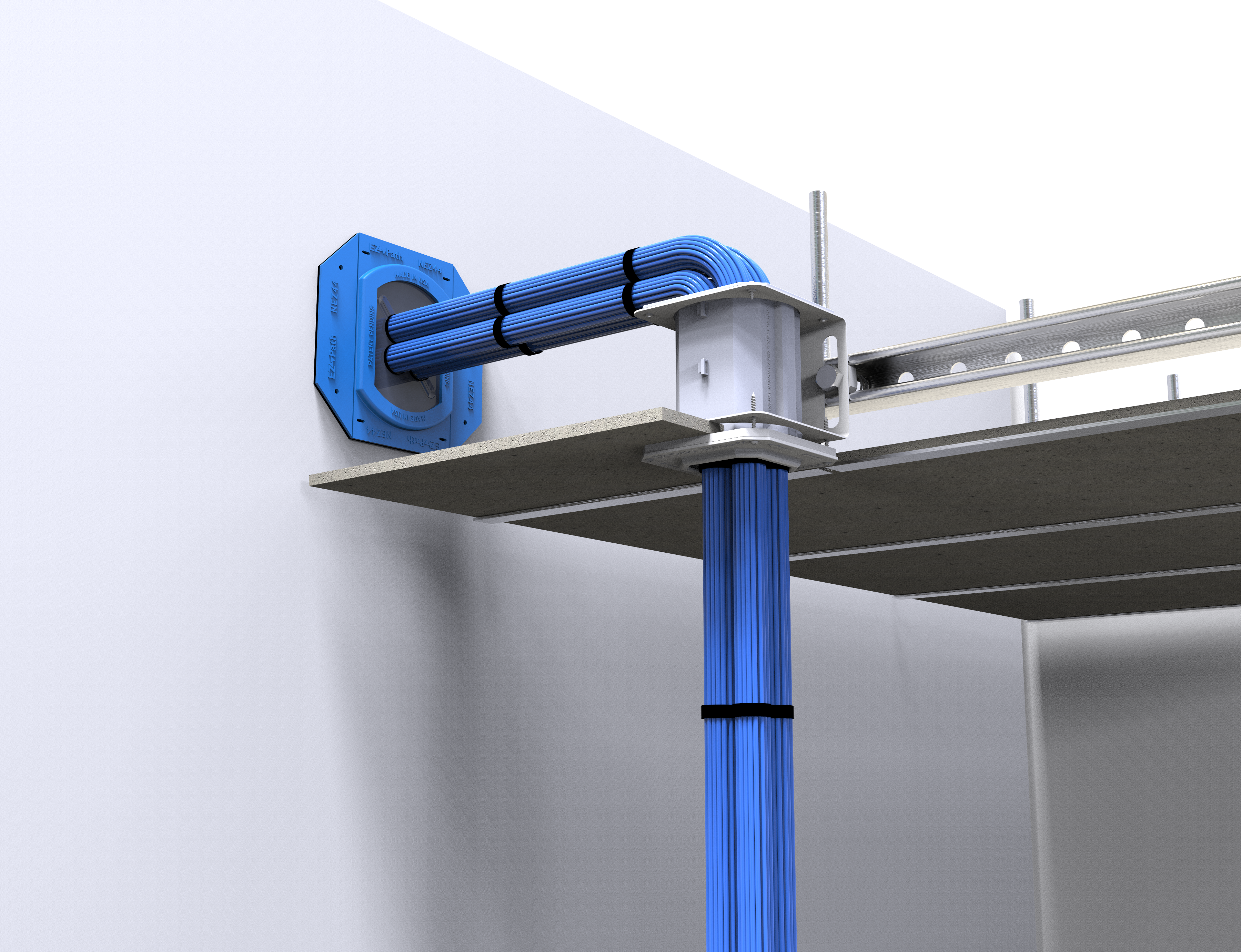Com uma variedade de configurações de placas de montagem, o EZ-Path® é a solução de passagem de cabos mais adaptável que se ajusta às suas necessidades de passagem. Os sistemas de grade modular, as placas de dispositivo único, as placas de suspensão horizontais e verticais, bem como as soluções para construções novas e existentes, fazem do EZ-Path® a solução mais versátil para obter conformidade no caminho do cabo, adaptando-se para atender às suas necessidades, em vez de forçar o caminho a se adaptar ao seu sistema corta-fogo.