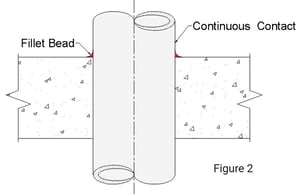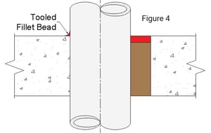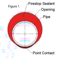 sometimes make this task difficult. So what kind of bead is required? According to the UL Systems, it is often stated to be a minimum diameter (Figure 3). And this would be true if the sealant were not tooled. More accurately, the bead applied at point contact is a fillet bead (Figure 4). The bead is applied initially to a specific diameter (e.g. ¼”), but it is then tooled to form the fillet bead. For water-based products, this is often done with a swipe of the finger. For silicones or urethanes that may be stickier, a tooling knife or even a plastic spoon may be used. Often the illustrations will show the desired profile, which is more triangular when viewed as a cross-section. If an inspector wanted to measure the point contact bead, they might cut into it to verify the bond between pipe and substrate. In the case of a ¼” bead, it might more accurately measure as a ¼” x ¼” fillet bead. Keep in mind that it may be unnecessary to destructively test that portion of the seal. Often bond can be measured by simply pushing a thumb into the seal at that location to ensure that it stays adhered to both penetrant and substrate.