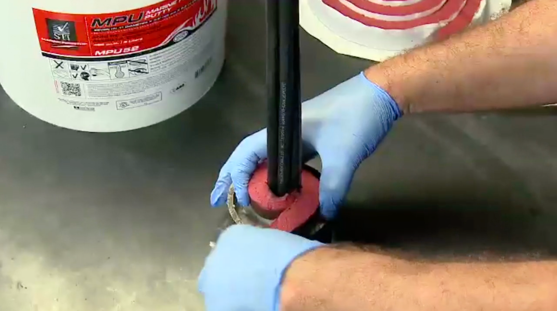 Um selante contra fogo de polímero híbrido, flexível e de componente único para uso como vedação de penetração em anteparos e decks com classificação de fogo.