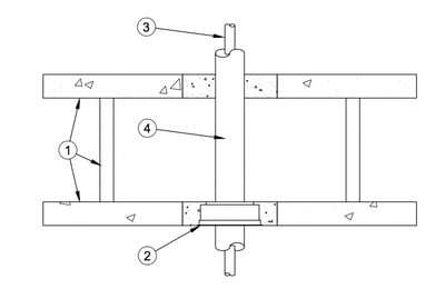 F-B-5011 – A new firestopping solution for insulated PEX Tubing penetrations within FinFrock Dual Deck floors. A SpecSeal® Cast-In Firestop Device is installed at the bottom slab and SpecSeal® Series SSS, LCI, SIL300 Sealant or grout is installed at the upper slab for max 1 inch diameter PEX tubing with up to 1-1/2 inch thick fiberglass insulation.