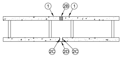 FF-S-0049 and FW-S-0025 – Joints of up to 2 inches between FinFrock Dual Deck assemblies or Dual Deck assemblies to concrete walls can now be firestopped using SpecSeal® BLU, BLU2, RED or RED2 Wrap Strip in conjunction with a steel plate at the underside of the joint.
