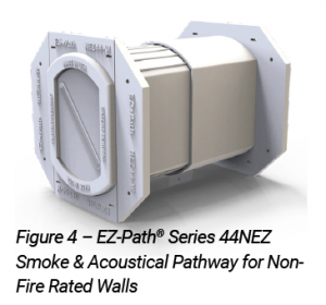 For walls that are fire-rated, the EZ-Path Series 22, 33, or 44+ are an excellent choice for providing a pass through for these temporary services while still maintain consistent performance (Figure 3).