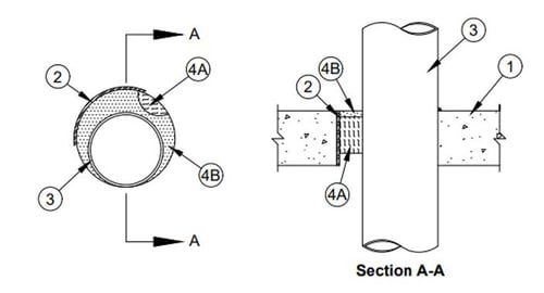 The use of a sleeve can add an additional critical factor to the firestop system. Metallic sleeves transfer additional heat which can require additional firestop material thickness or the addition of backing material such as mineral wool. The UL Systems will always list the requirements of a sleeve and also indicate that it is required or optional. When a sleeve is optional it is typically shown and called out similar to the below system: