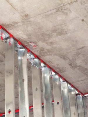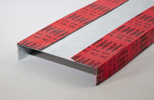 Intumescent Gasket products such as SpecSeal® Track Top Gasket (TTG) are a relatively new addition to the suite of firestop products used to address construction joints. Designed to take the place of traditional firestop sealants and sprays, TTG consists of a thin profile intumescent with a Polyethylene backing material on one side. TTG is available in a range of configurations to match the most common track widths (From 2-1/2 in. to 6 in.) and wall configurations (Standard and Shaft wall). Simply place the TTG over your ceiling runner during construction and cut the TTG to match the length of your track.