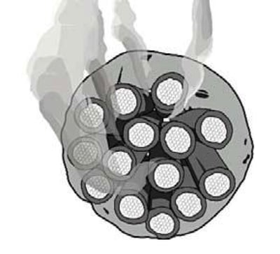 Why are cable bundles leaky? The short answer is that there is significant unsealed space between the cables within the bundle. In the typical cable/sleeve penetration after the sleeve is installed, some amount of cables will be added before any firestopping is performed. At this point not only is the sleeve completely open to the passage of smoke but it is also a pathway for fire itself. Once some cables are installed, firestop sealant, putty, or foam muffins may be installed around the cable bundle. The keyword here is around. Firestopping will not typically be installed within the cable bundle.